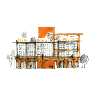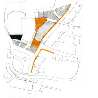 Overlays drawn on top of a map of Commercial Road, with particular attention towards the Cascades area. Redefining mass, Creating a open air courtyard area.