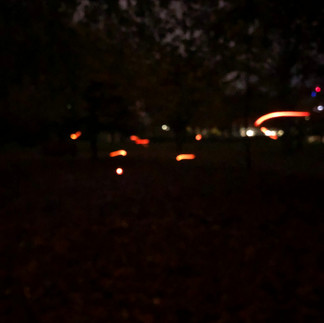 Left to Right: Disco lights under the railway line behind war memorial, 'fire flies', Rainbow.